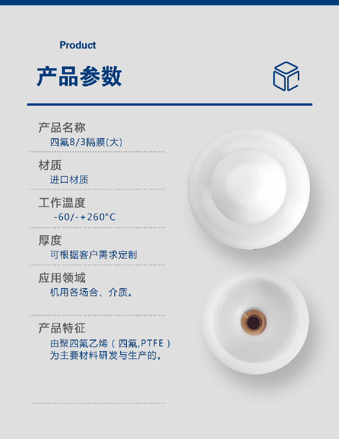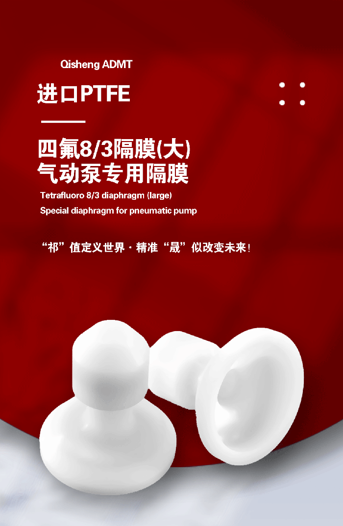 進口鐵氟龍8/3隔膜 - 此配件是由四氟(PTFE/聚四氟乙烯)材料研發(fā)生產而成的,用于泵類如氣動隔膜泵、計量泵等,閥類,規(guī)格尺寸可定制!
