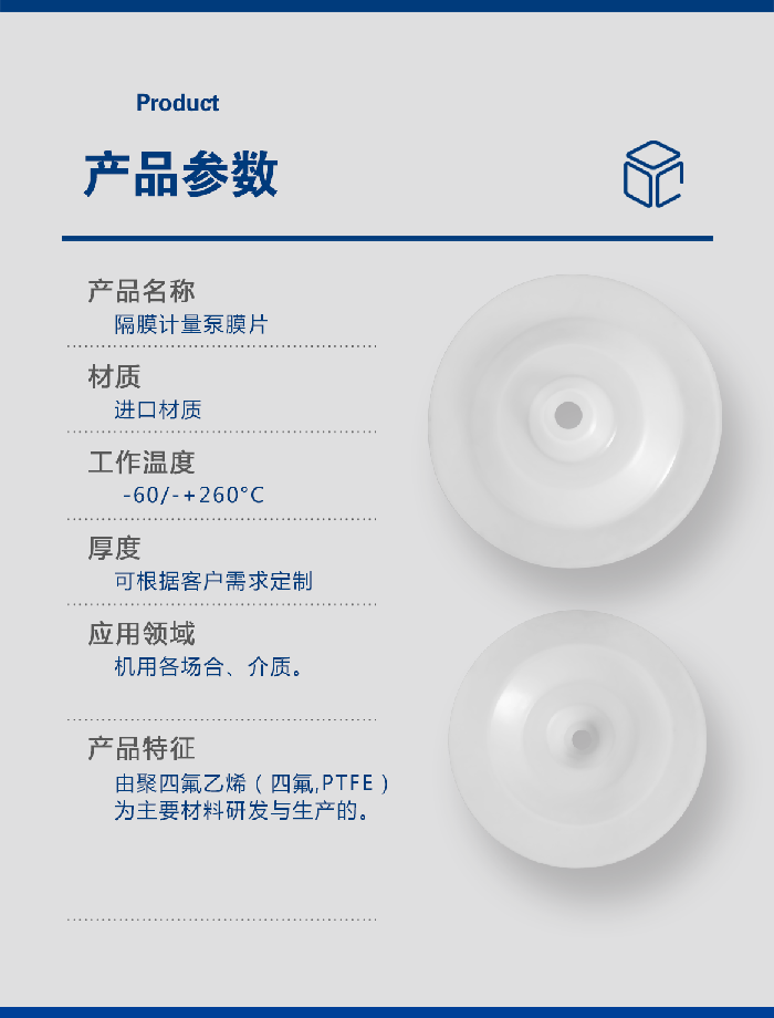 進(jìn)口氣動(dòng)泵設(shè)備專用四氟膜片 - 此配件是由四氟(PTFE/聚四氟乙烯)材料研發(fā)生產(chǎn)而成的,用于泵類如氣動(dòng)隔膜泵、計(jì)量泵等,閥類,規(guī)格尺寸可定制!